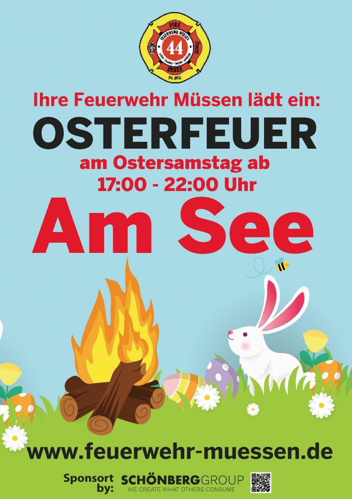 Am Ostersamstag von 17:00 bis 22:00 Uhr veranstaltet die Feuerwehr Müssen ihr Osterfeuer am See.