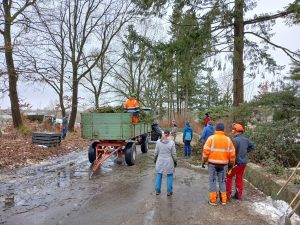 Bei mildem Tauwetter trafen sich 12 Freiwillige mit Kettensägen, Astscheren und vielen fleißigen Händen am Friedhof, um altes Holz zu beseitigen.