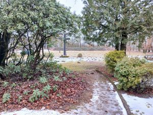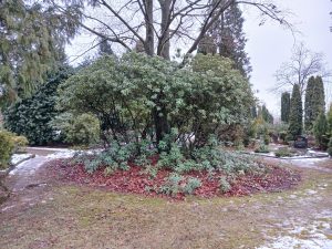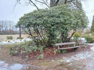 Außerdem wurde der große Rhododendron kurz vorm Kreuz zurückgeschnitten.